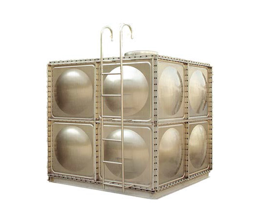 2. 结构独特合理:高强度的冲压板及箱内分布均匀的不锈钢拉筋使箱体承压均匀合理。水箱的进水管、出水管及溢流管的管径、位置由设计决定。